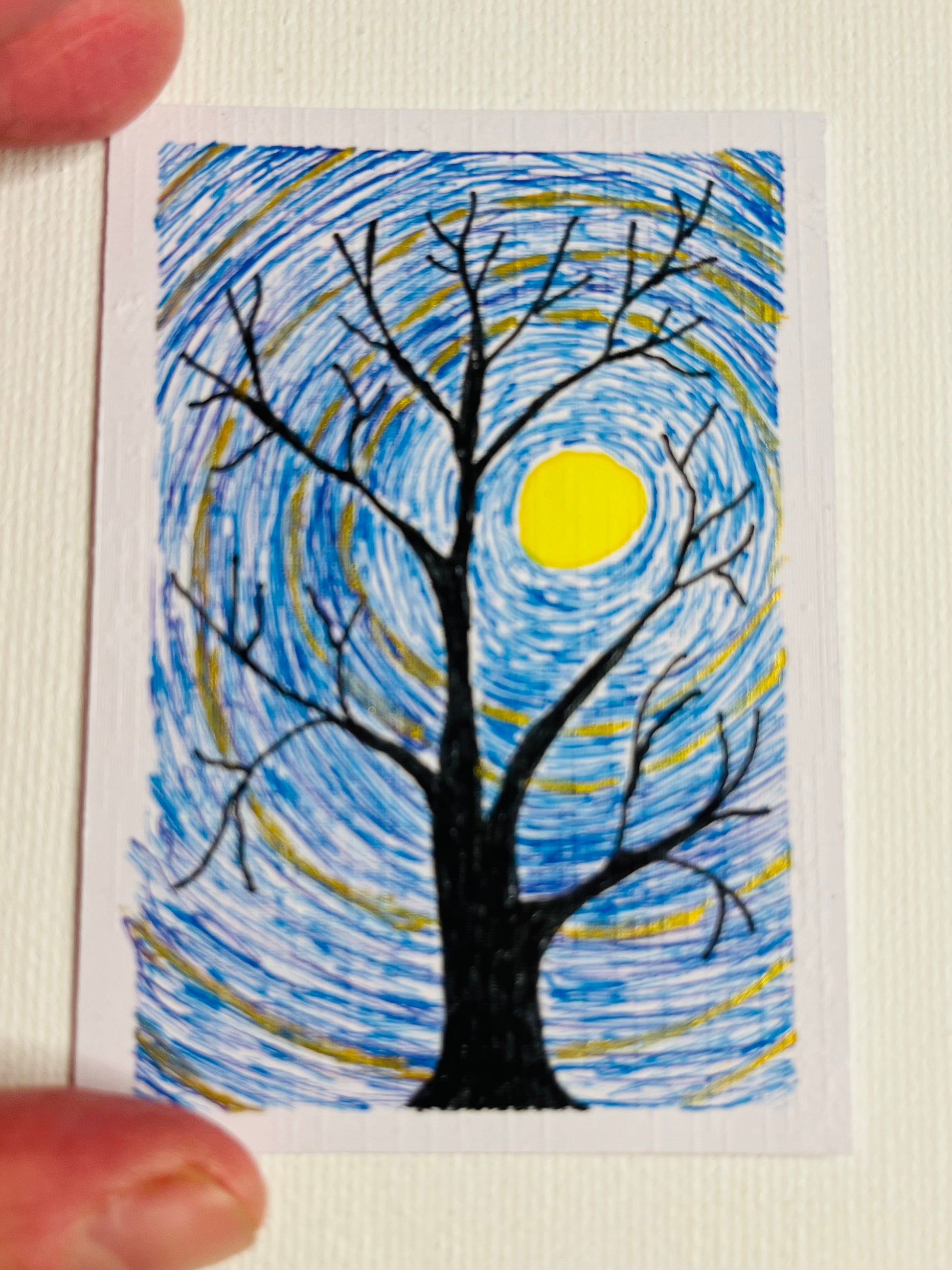 ACEO - Spooky Tree With Golden Moonlight 4