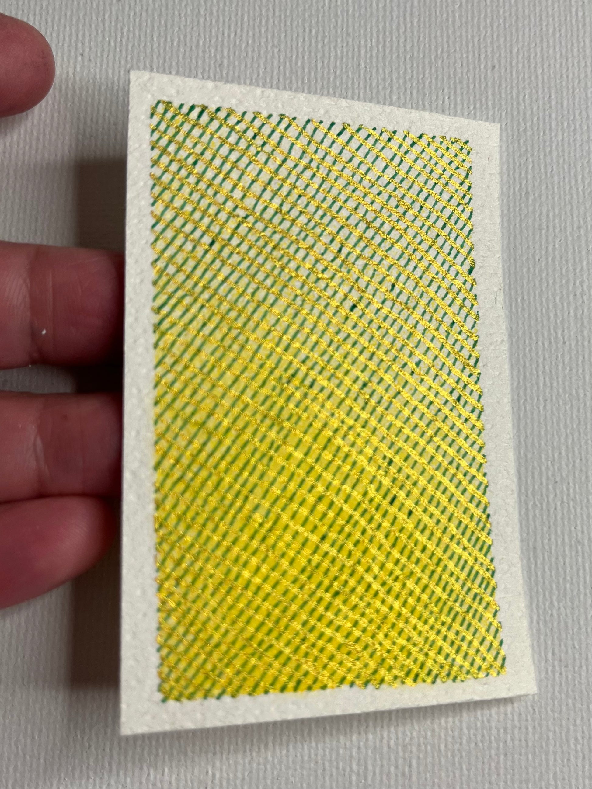 ACEO - White Acrylic Background With A Splash of Yellow Topped with Green and Gold 2