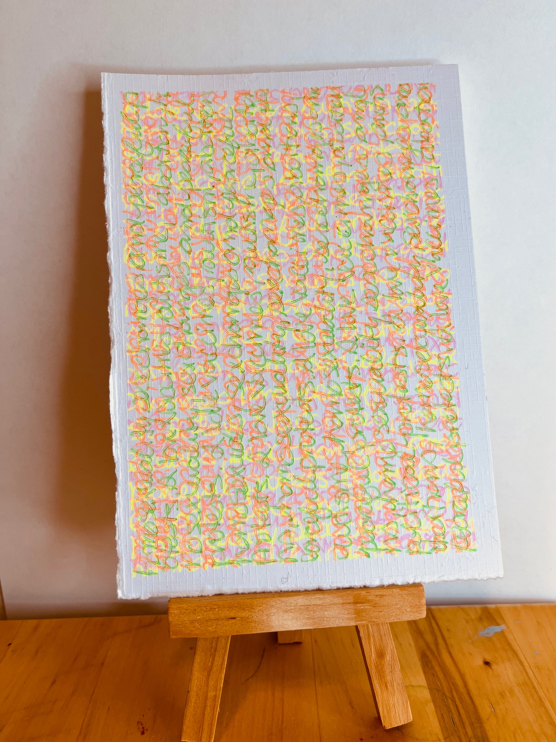 Displayed are feminist rants written out in green, pink, orange and purple. And like all feminist rants, the message gets lost in the noise of the world. (Although I can see that I have written more than once "I love vaccines." So that message did come through.
